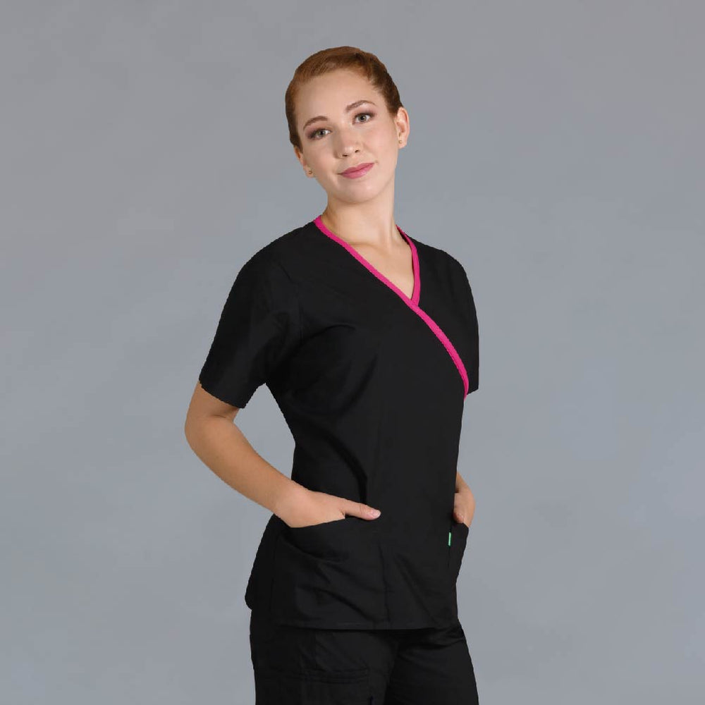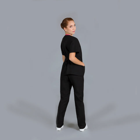 Conjunto uniforme quirúrgico disponible en color negro, azul mar, fucsia, verde, rojo, morado y en tallas desde XS, hasta XL. Ideal para prácticas de estudiantes de medicina o personas que ya estén trabajando en el área de la salud en general.