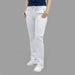 Pantalón clínico blanco para mujer con jareta y bolsas de parche delanteras y traseras, compuesto de algodón y poliéster, ideal para estudiantes de medicina y personas del área de la salud en general.